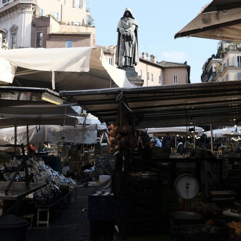カンポ・デ・フィオーリは、ローマ中心部にある活気あふれる広場です。日中は新鮮な野菜や果物、花などが並ぶ市場として賑わい、地元の人や観光客でにぎわいます。夜にはレストランやバーが軒を連ね、食事やお酒を楽しむ社交の場に変わる、ローマならではの生活と観光が融合したスポットです。